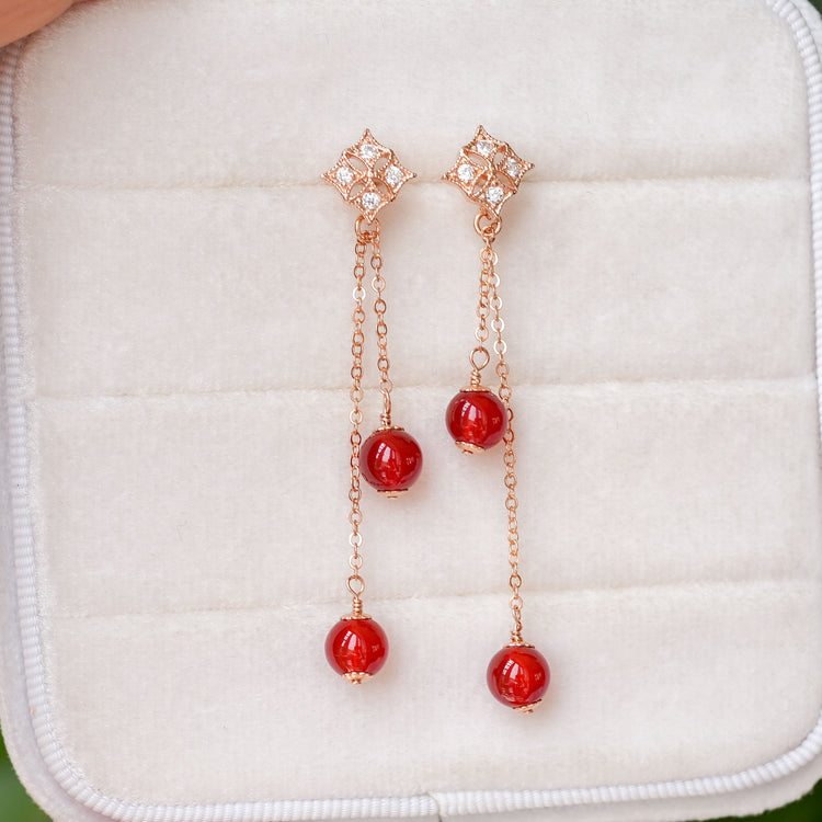 Some see-saw fun with this pair of Red Agate earrings. The beads are movable and add light movement to the earrings. Definitely a conversation-starter!
