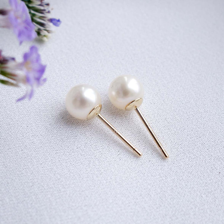 Freshwater Pearl Ear Studs in 14K Gold - 5-5.5mm