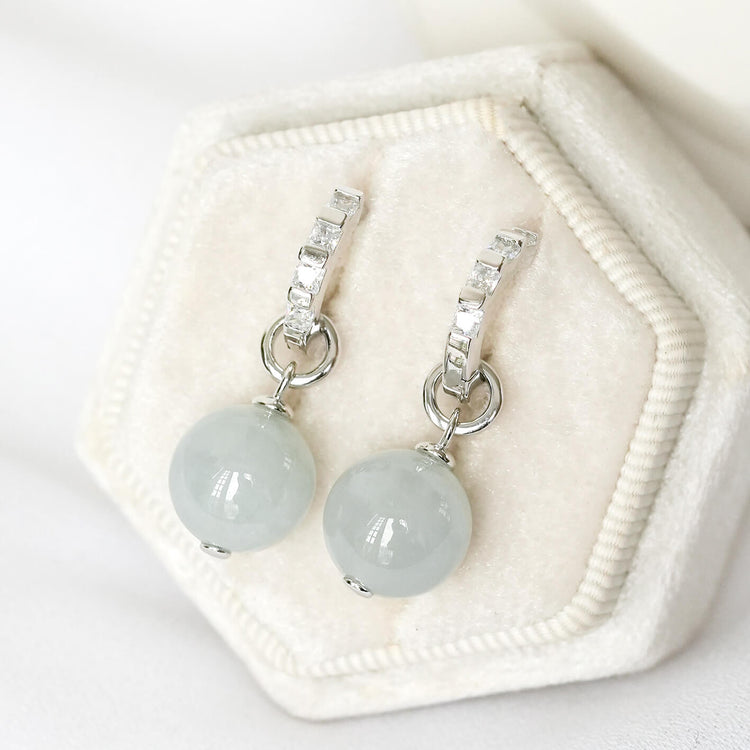 The Prism Jade Convertible Hoops are designed for both modern versatility and everyday comfort. The sleek square-cut cubic zirconia hoops sit snugly and securely, making them perfect even for active days whether you’re doing yoga, running errands, or heading to the gym. Worn on their own, they add a subtle touch of glam without poking or getting in the way. For a different look, swap in the removable blue Jade dangles, or pair the hoops with your own pearls or gemstone drops. One chic pair, endless styling possibilities.