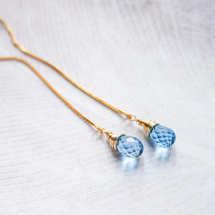 These sleek ear threaders are just perfect for letting the gorgeous Swiss Blue Topaz shine. They're also really versatile, allowing you to wear the gems at the same or different lengths on each earlobe to create fun asymmetrical looks.