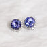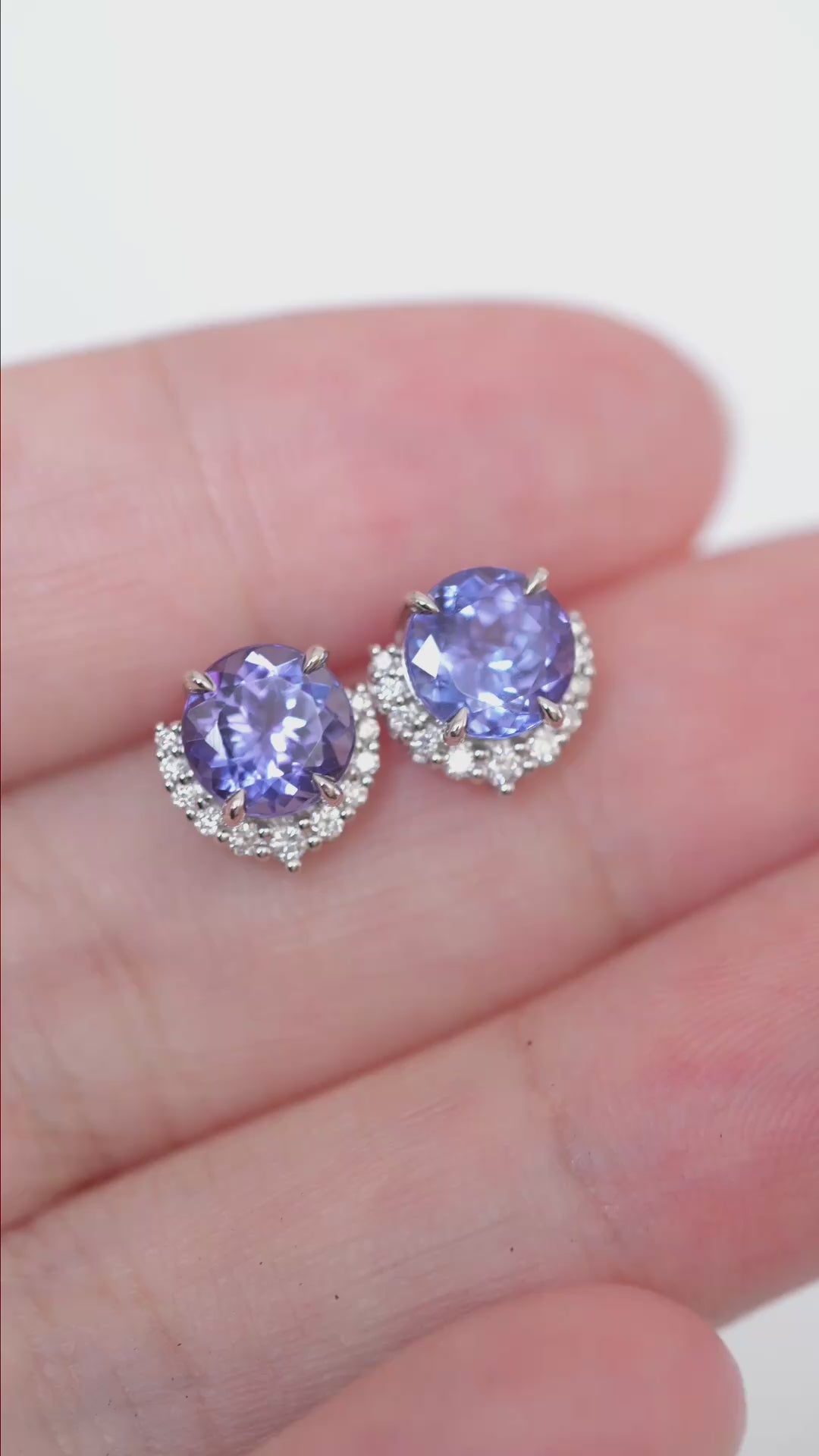 A graceful horseshoe of sparkling Diamonds cradles a pair of captivating round Tanzanite gems in this elegant design. The Diamonds curve gently around the vivid violet-blue stones, highlighting their depth of colour and brilliance. The striking hue you see on your screen is exactly what makes Tanzanite so mesmerising in person.