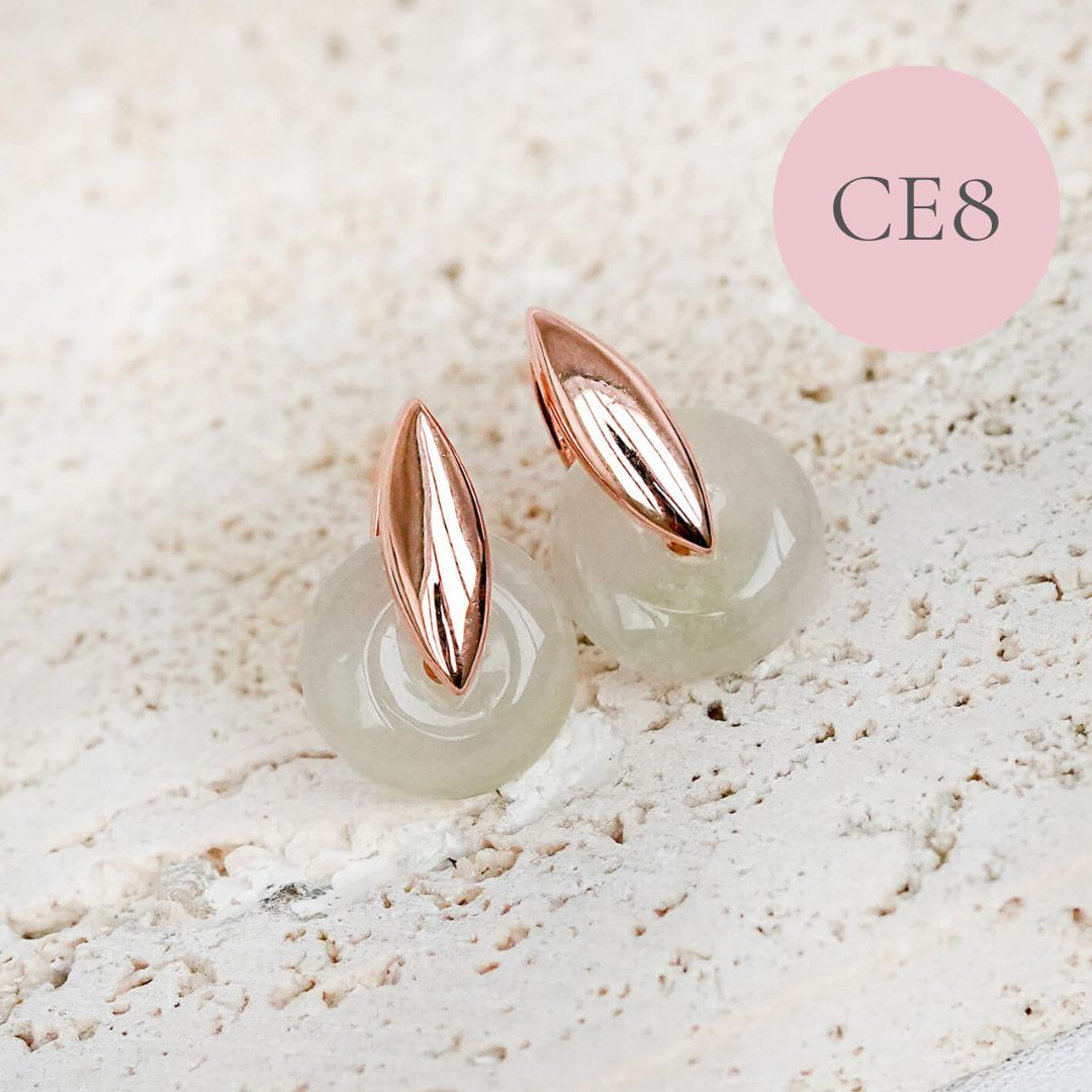 Minimal yet full of charm, these petite ear studs feature Jade donuts in a sleek, modern setting. A subtle statement piece that adds a refined pop of elegance to any look.