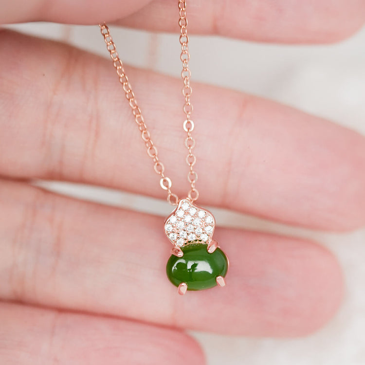 A modern nod to a traditional symbol of abundance and protection, this necklace is inspired by the gourd’s iconic silhouette. Worn on a delicate and subtly sparkly chain, this Jade necklace is so elegant and a meaningful addition to any jewellery collection.