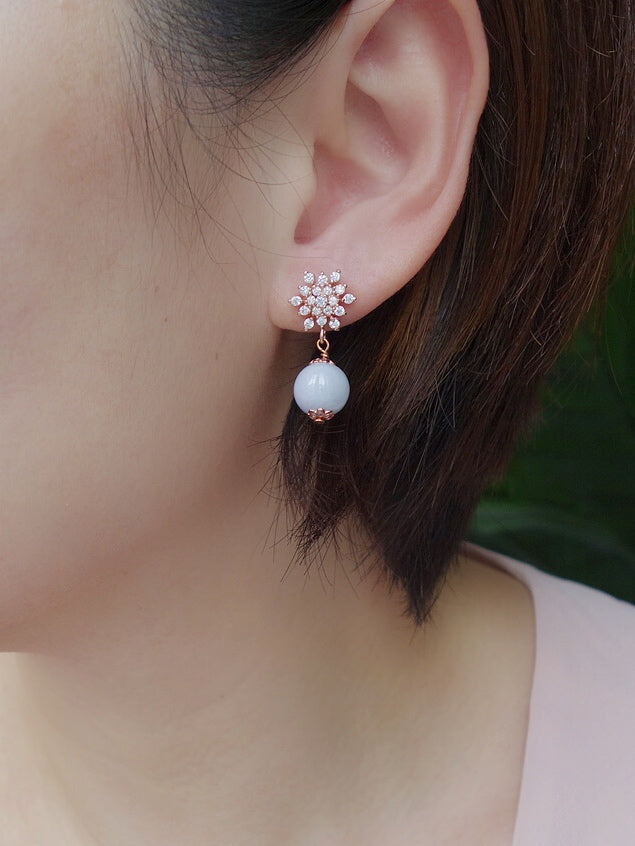 I paired these romantic Snow ear studs with white Jade for a timeless and chic look.