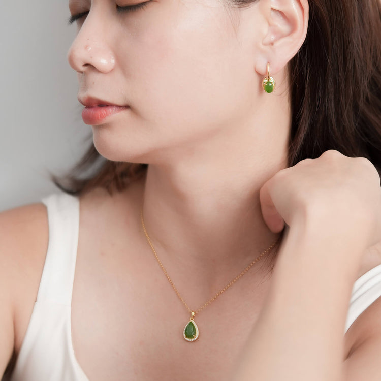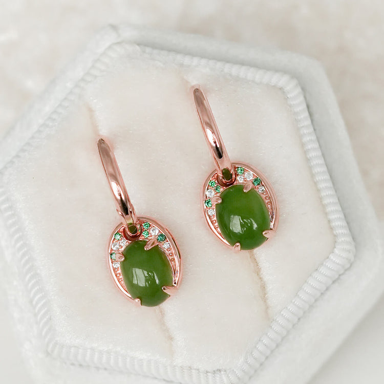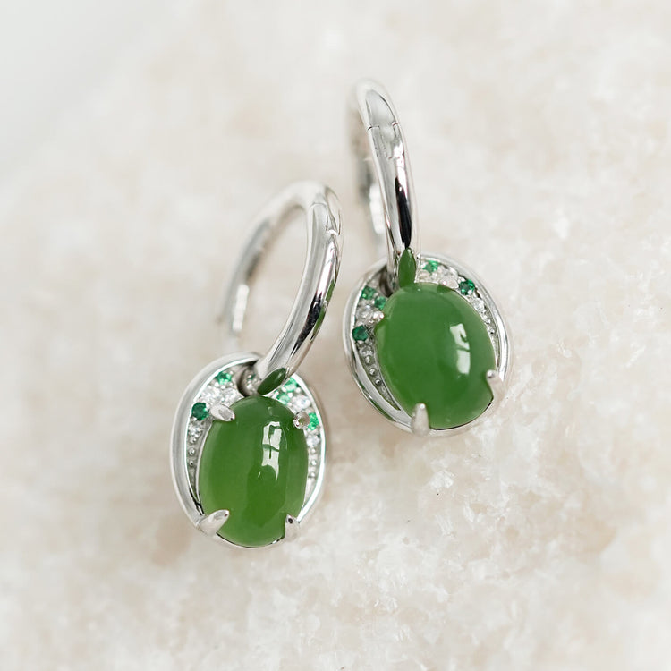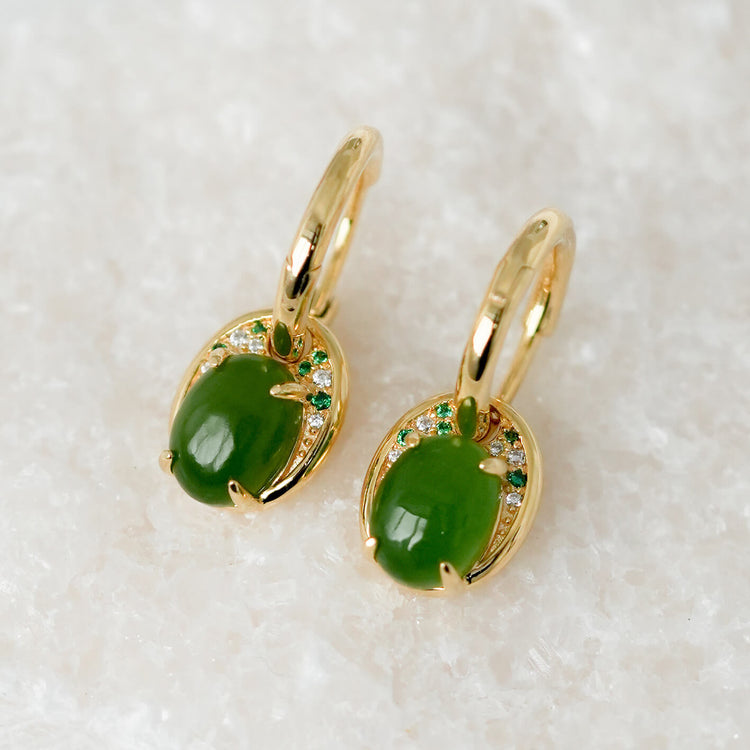 Two looks, one stunning pair. These earrings feature a sleek hoop that can be worn solo for everyday ease, or with a detachable green Jade dangle for added elegance. Each dangle is adorned with twinkling cubic zirconia, framing the Jade centerpiece in a modern, polished silhouette. Designed for the woman who loves versatility without compromising on style.