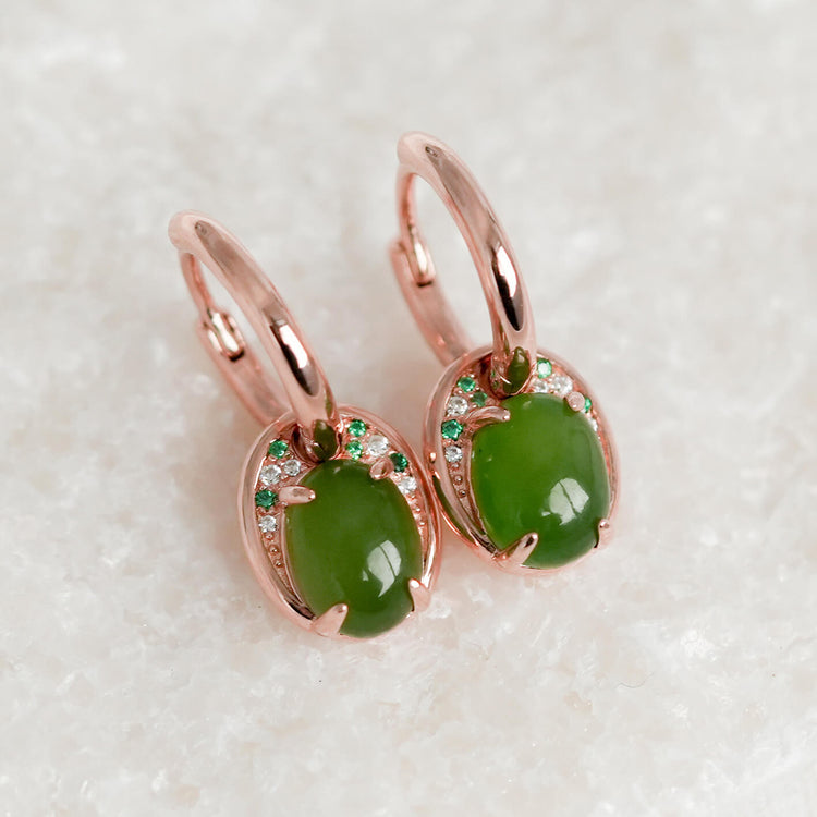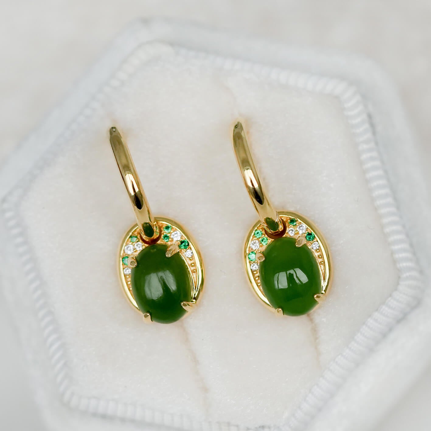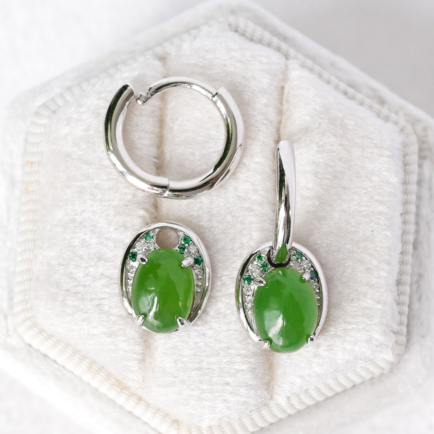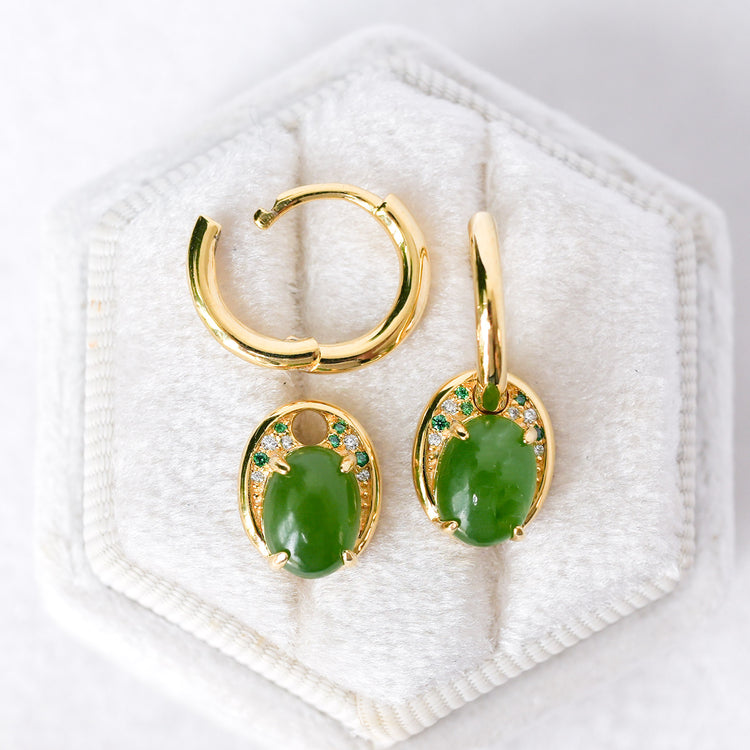 Chic Hoop Earrings with Detachable Twinkling Jade Dangles