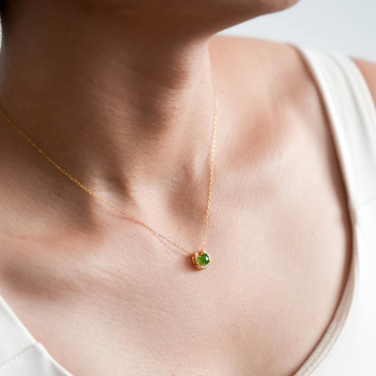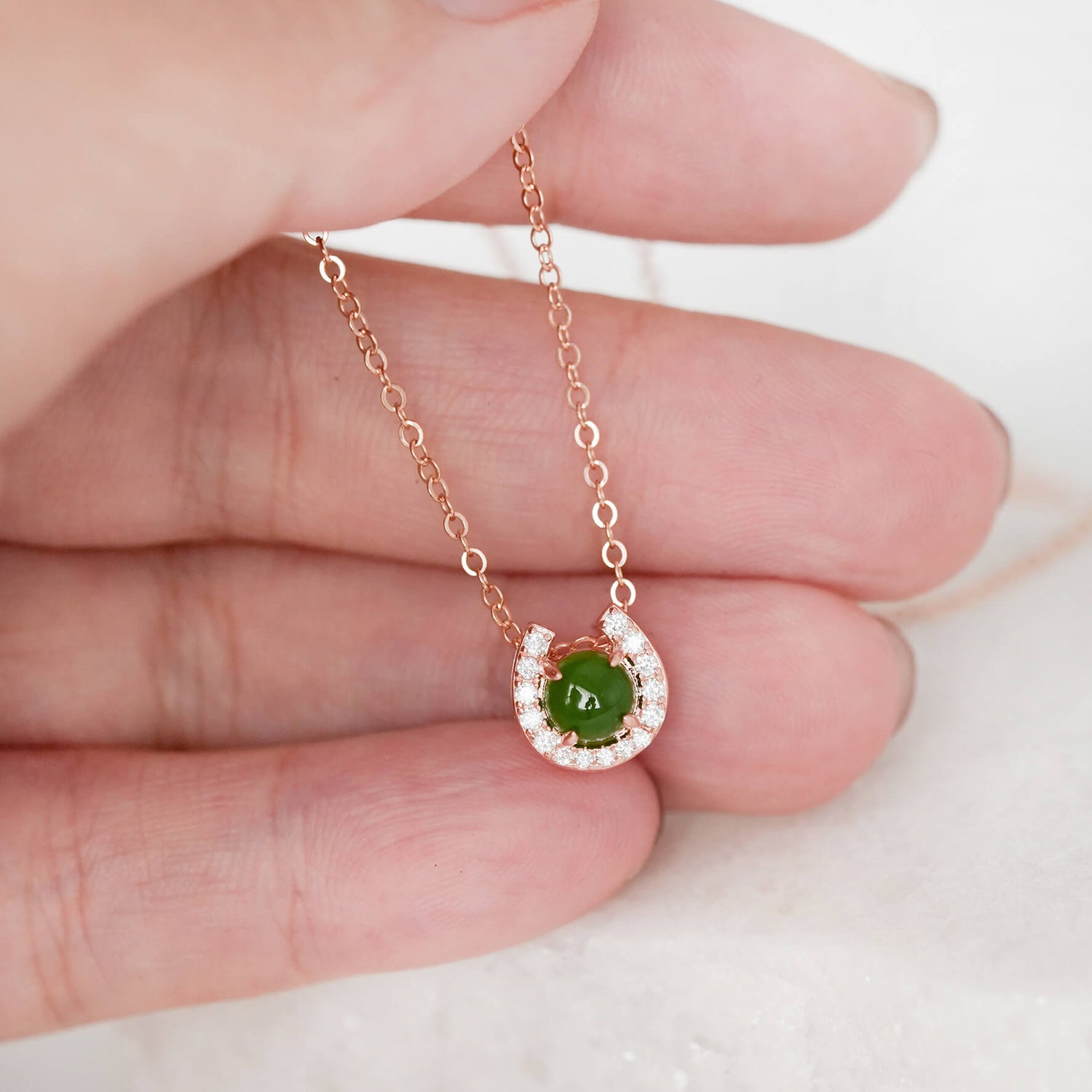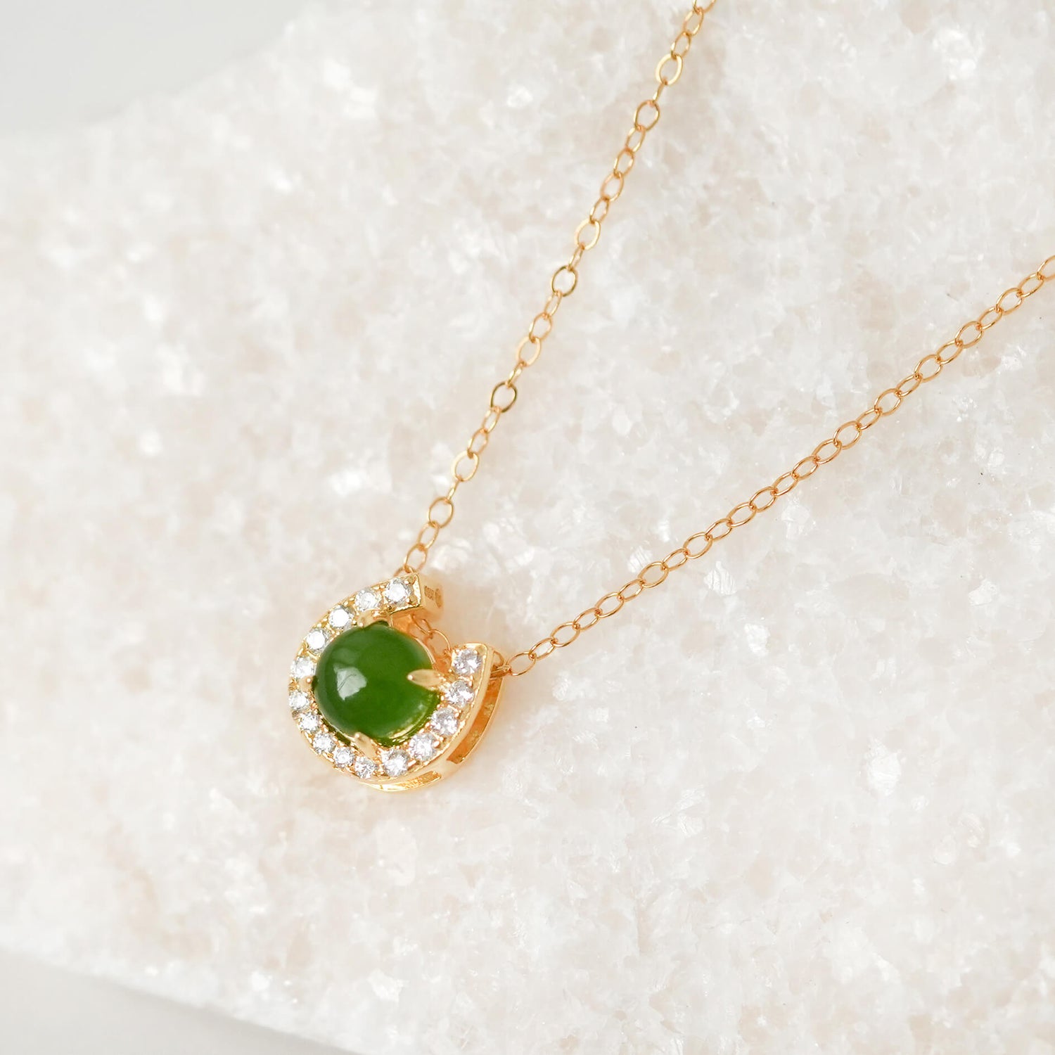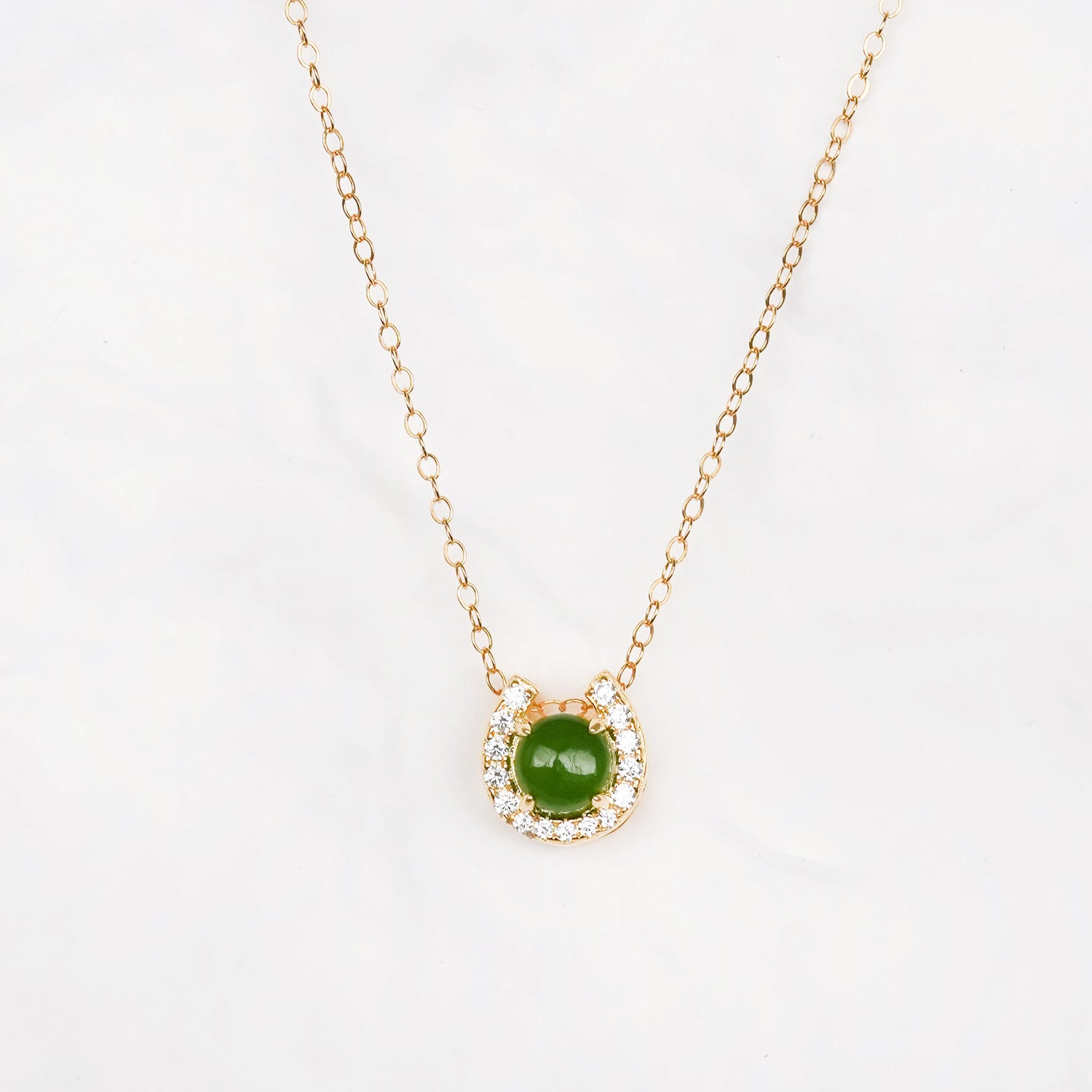 Symbolising luck and elegance, this horseshoe Jade is worn as a floating-style pendant on a delicate and subtly-sparkly chain. Meet your new favourite everyday necklace. :)
