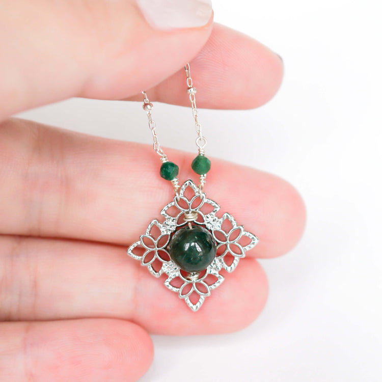 Peranakan Tile Pine Green Jade Necklace
