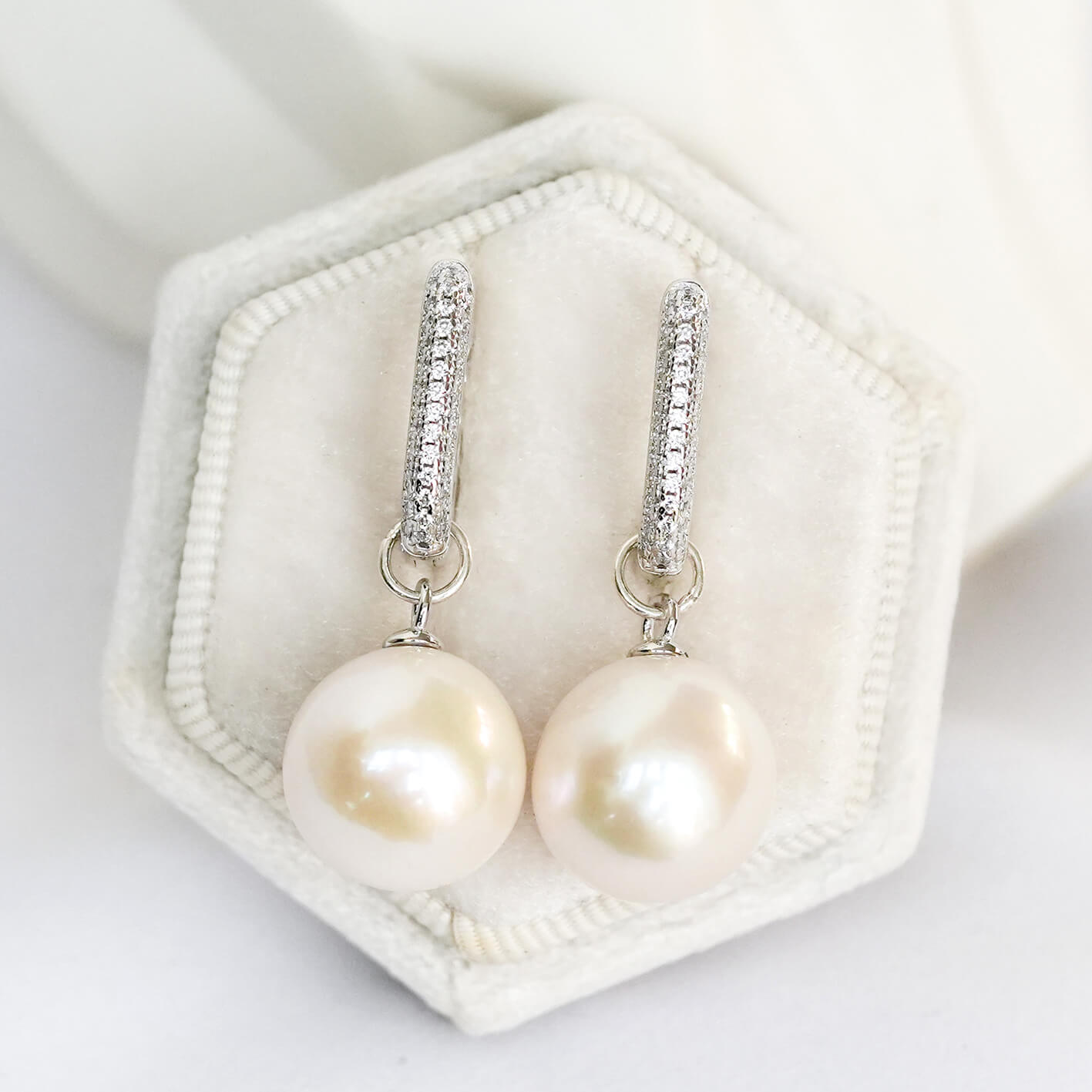 The Radiant Pearl Convertible Hoops combine timeless elegance with exceptional versatility. Designed with a sleek gold pavé hoop, each pair comes with luminous detachable pearl drops — perfect for classic, polished styling. Swap the pearls for your favourite gemstone dangles, such as jade or rose quartz, to create an entirely new look. A beautiful two-in-one (or more) design that adapts effortlessly to every occasion.