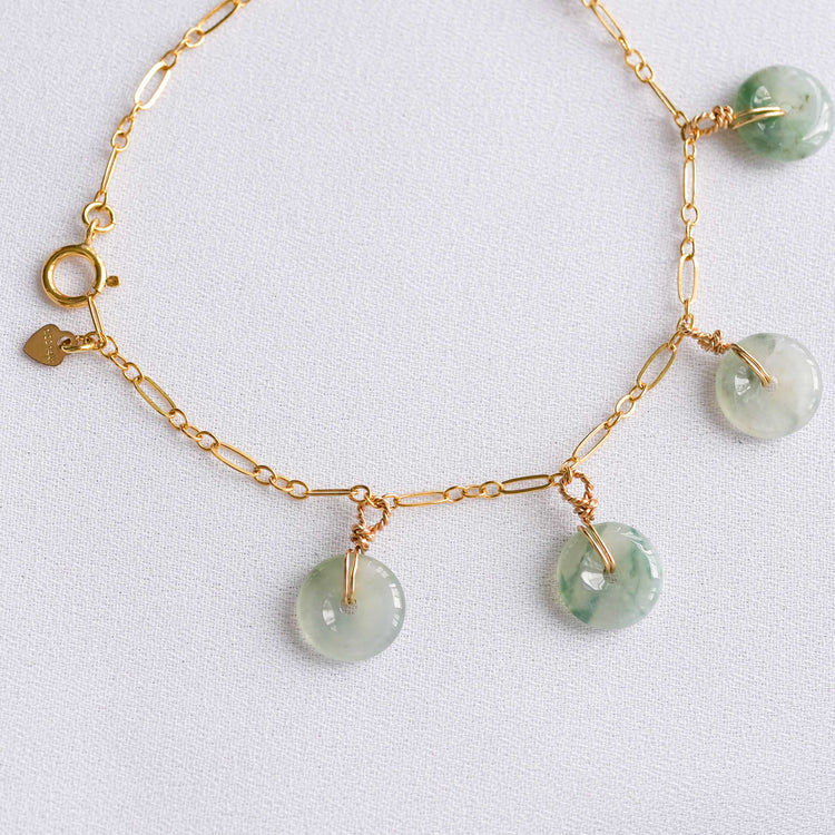 We hand-picked 6 unique green Jade donuts for this paperclip bracelet because the number "6" in our local Hokkien and Teochew dialects is pronounced as "Luck"! Now how's that for a lucky bracelet! :)