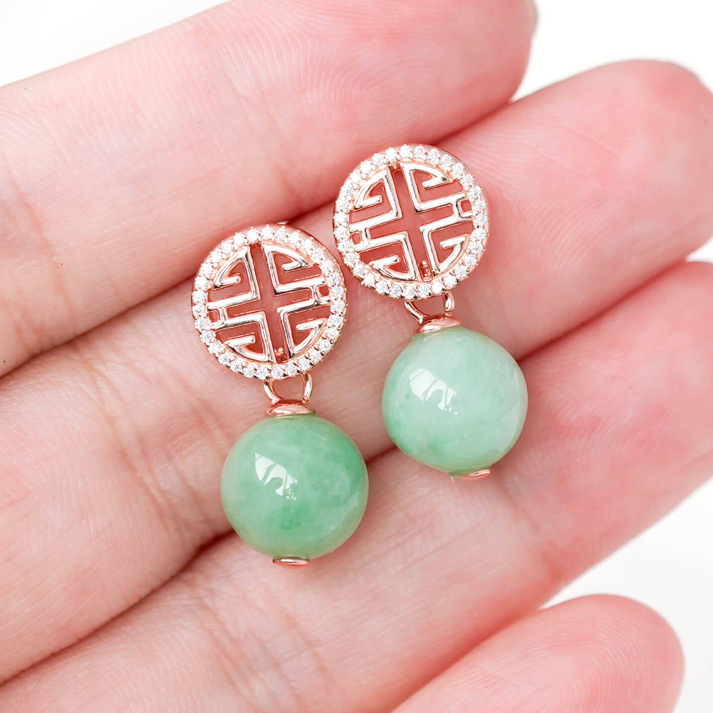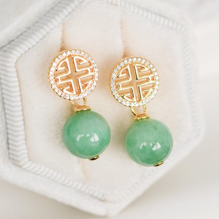 Crafted with vivid green jade that have been hand-selected for its luminous depth, these earrings features our specially designed Lu (禄) symbol, representing prosperity from the traditional “Fu Lu Shou” trinity.