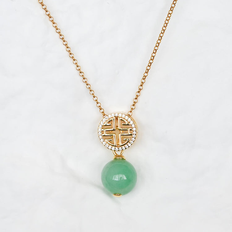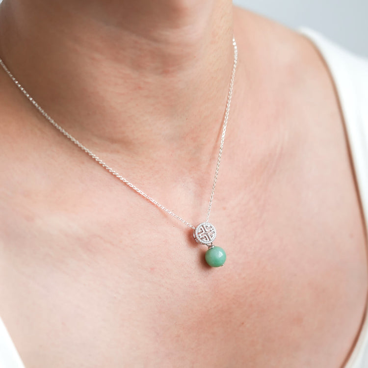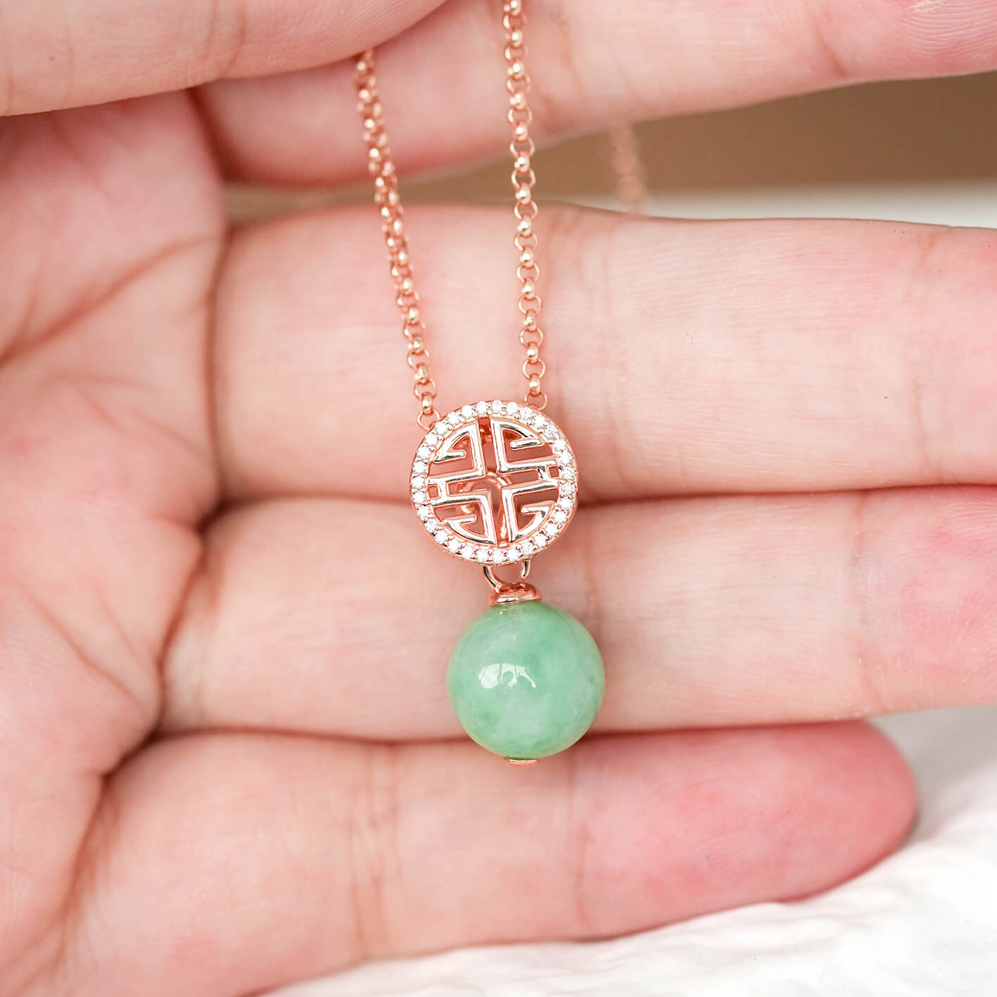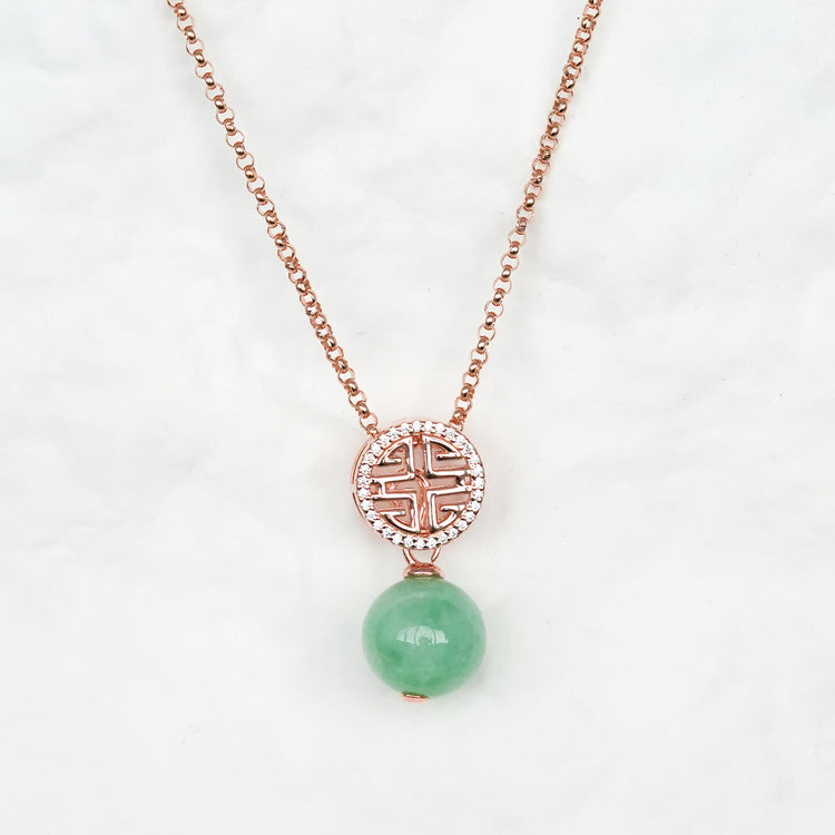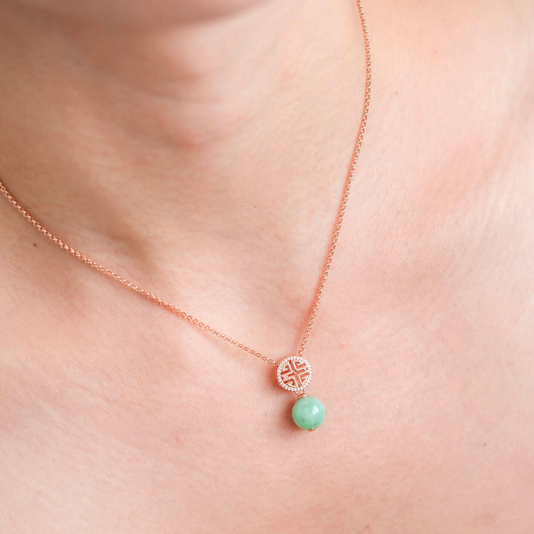 Crafted with vivid green jade that have been hand-selected for its luminous depth, this necklace features our specially designed Lu (禄) symbol, representing prosperity from the traditional “Fu Lu Shou” trinity.