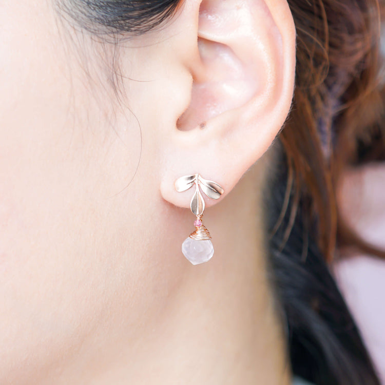 Rose Quartz with Triple Leaf Ear Studs RQ3