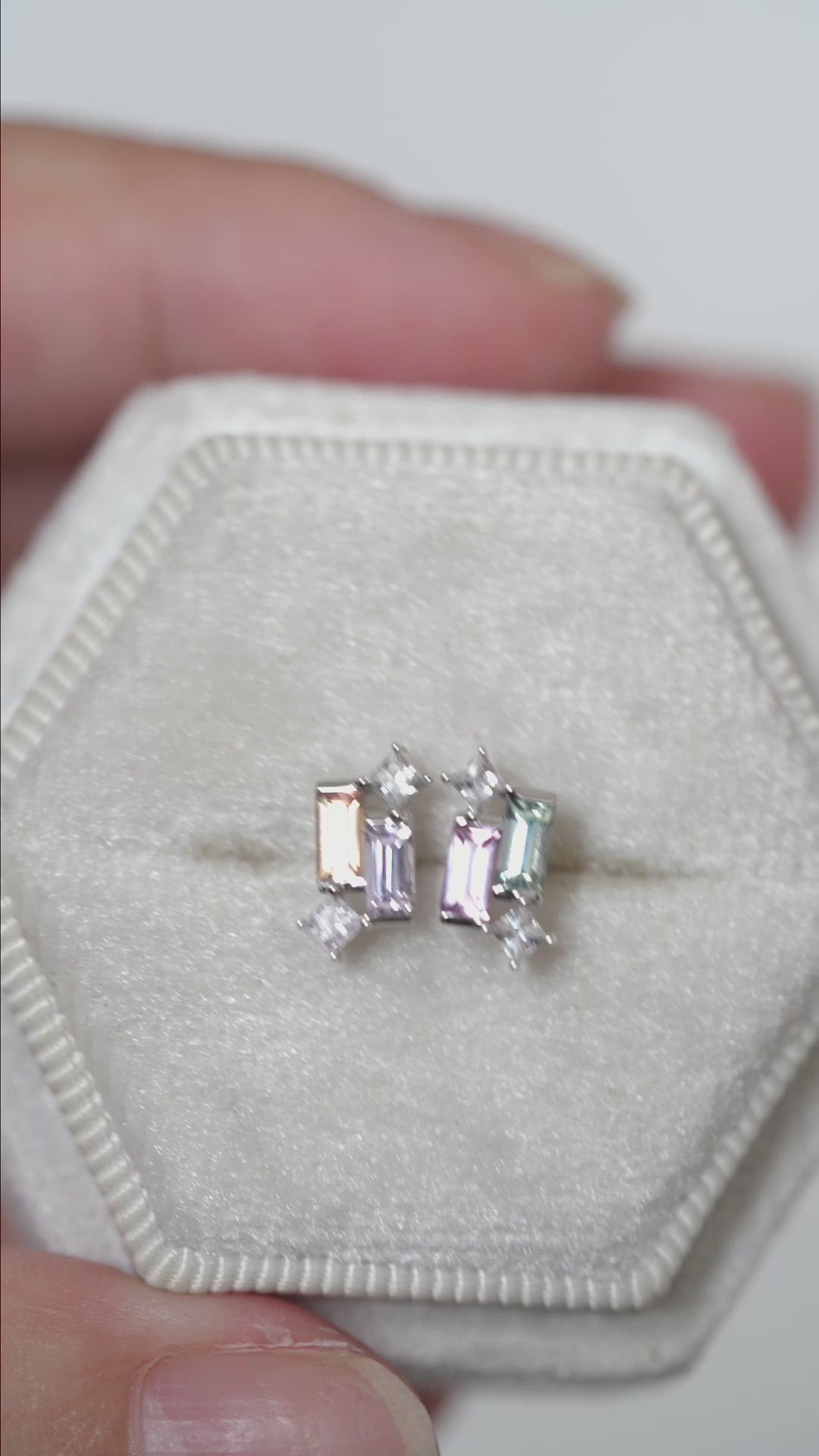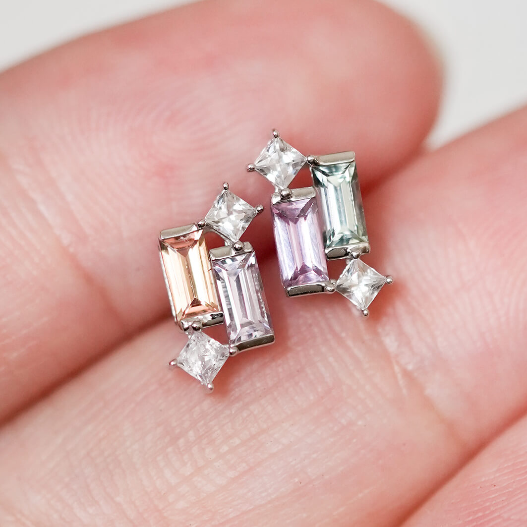 Set in sleek 14K white gold, the cool tone enhances each hue with a crisp, modern finish. Dainty yet full of personality, this pair brings joyful colour to your everyday styling.
