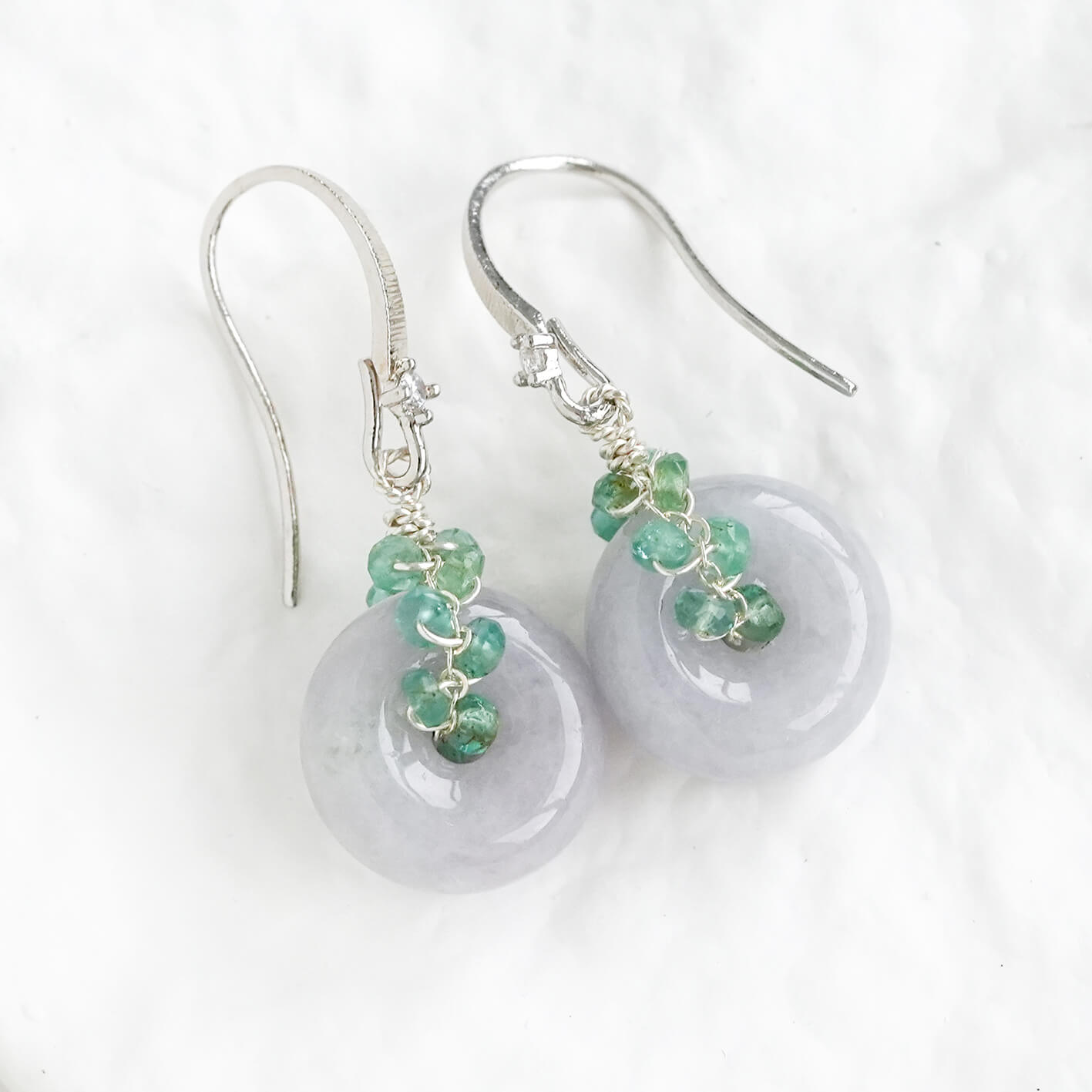 Vivid Lavender Jade with Emerald Vine Earrings - Dapped Hook