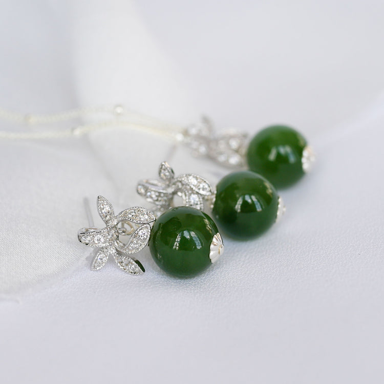 Celebrate love, strength, and beauty with our Orchid Jade Earrings and Necklace Set. Crafted with rich green Nephrite Jade and delicate orchid details, this elegant set makes a thoughtful and lasting gift for her or yourself.